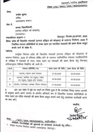 देहरादून। उत्तराखंड के 12 जिलों में त्रिस्तरीय पंचायत चुनाव के बाद अब नए पंचायत प्रतिनिधि जल्द ही कार्यभार संभालने जा रहे हैं। शासन ने ग्राम पंचायत, क्षेत्र पंचायत और जिला पंचायत के शपथ ग्रहण और पहली बैठकों की तिथियां घोषित कर दी हैं। हालांकि, ग्राम पंचायतों के गठन में अब भी कई चुनौतियाँ सामने हैं।